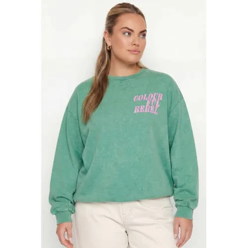 Ga voor een relaxte, moderne look met deze groene dames sweater van Colourful Rebel Curve. De trui heeft een middel-lange lengte en rechte mouwen met een comfortabele pasvorm, speciaal ontwikkeld voor het grote maten assortiment. De ronde hals en het logo op de voorkant geven een sportieve, maar toch rustige uitstraling die makkelijk combineert met jouw favoriete basics.Details die het verschil maken Gemaakt van 100% katoen, voelt zacht aan op de huid en is prettig om elke dag te dragen Middel-lange lengte, geschikt in combinatie met een hoge jeans of legging Lange, rechte mouwen voor een ontspannen silhouet Ronde hals zonder sluiting voor snel en makkelijk aan- en uittrekken Logo print aan de voorkant Geen zakken voor een rustige, nette voorkant Maatadvies: dit artikel valt normaal Wasbaar op 30 graden, lauw strijkbaar (1 punt) en niet drogen in de droogtrommelCasual trui voor elke dagDeze sweater past goed bij een ontspannen dag thuis, een wandeling of een casual werkdag. In de lente draag je de trui zo over een top, op koelere dagen schuif je er makkelijk een T-shirt onder. De groene kleur combineert met denim, zwart en neutrale tinten.Colourful Rebel Curve in grote matenColourful Rebel Curve brengt de bekende Rebel stijl naar het grote maten assortiment. De items zijn ontworpen met aandacht voor pasvorm en comfort, zodat je je vrij kunt bewegen en je outfit de hele dag prettig blijft zitten.Een groene sweater die het hele seizoen een vaste basis in je garderobe kan zijn.