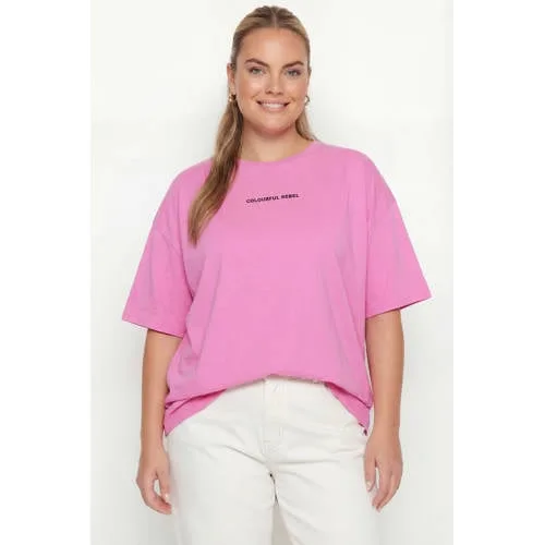 Dit roze dames T-shirt van katoen van Colourful Rebel Curve is een praktische basic met een subtiele logo print op de borst. Het shirt heeft een middel-lange lengte en een ronde hals. De rechte, korte mouwen en de zachte 180 grams jersey van 100% katoen zorgen voor een comfortabele pasvorm die prettig aanvoelt op de huid.Details die het verschil maken Gemaakt van 180 grams jersey van 100% katoen, voelt stevig en zacht tegelijk aan Ronde hals en rechte korte mouwen voor een casual, tijdloze uitstraling Middel-lange lengte, valt gemakkelijk over je broek of in je rok Logo print op de borst voor een herkenbare Colourful Rebel uitstraling Maatadvies: dit artikel valt normaal, je kunt je gebruikelijke maat kiezen Wasbaar op 30 graden, lauw strijkbaar (1 punt) en niet drogen in de droogtrommelCasual top voor alledaags gebruikDit T-shirt laat zich eenvoudig combineren met je dagelijkse garderobe. Draag het met een jeans en sneakers voor een casual outfit, of in een rok met een vest erover als het wat frisser is. De roze kleur voegt direct een zachte kleurtoon toe aan je look.Colourful Rebel CurveColourful Rebel Curve ontwerpt kleding met aandacht voor pasvorm en comfort. De collectie sluit aan op actuele trends en is tegelijkertijd praktisch in het dagelijks leven. Met dit T-shirt voeg je een basisitem toe aan je kast dat je op veel manieren kunt dragen.Een veelzijdige basic die je kunt combineren met verschillende outfits.