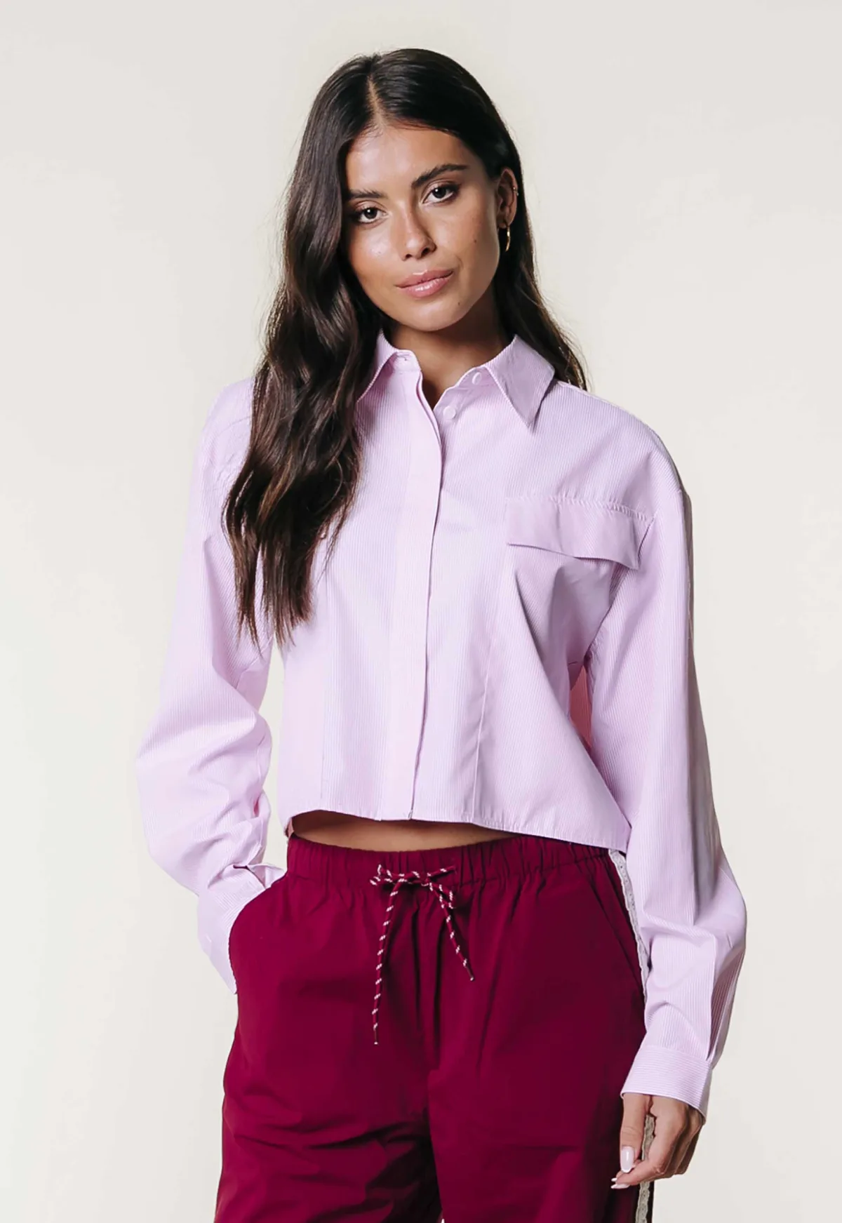 Dit is de WB117541 Febe Striped Blouse van het merk Colourful Rebel. Deze blouse heeft een cropped pasvorm en is gemaakt van een mix van katoen en polyester, wat zorgt voor een comfortabele en duurzame kwaliteit. De blouse is voorzien van een stijlvolle kent kraag en sluit met knopen. Voor extra functionaliteit is er een borstzak toegevoegd.