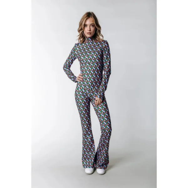 Deze multicolor lange broek voor dames van het merk Colourful Rebel is een echte blikvanger in jouw kledingkast. Het model, genaamd Graphic Peached, is voorzien van een elastische tailleband voor een comfortabele pasvorm. De broek is gemaakt van 87% polyester en 13% elastaan, wat zorgt voor een zacht en soepel vallend materiaal. Het allover grafische dessin geeft de broek een speelse en trendy uitstraling. Perfect om te combineren met een basic top en sneakers voor een casual look, of juist met hakken en een blouse voor een meer geklede outfit. Met deze lange flared broek laat jij zeker weten je eigen stijl zien. Shop hem nu bij Nummerzestien en steel de show!