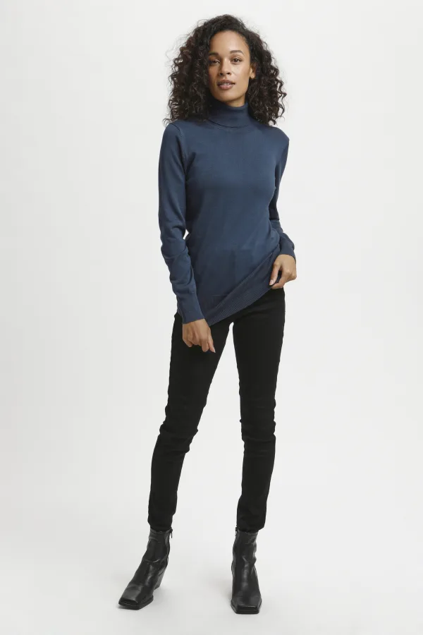 Dames coltrui met getailleerde pasvorm en lange mouwen. Voorzien van klassieke hoge col en fijn breisel. Comfortabel voor dagelijks gebruik of op kantoor.