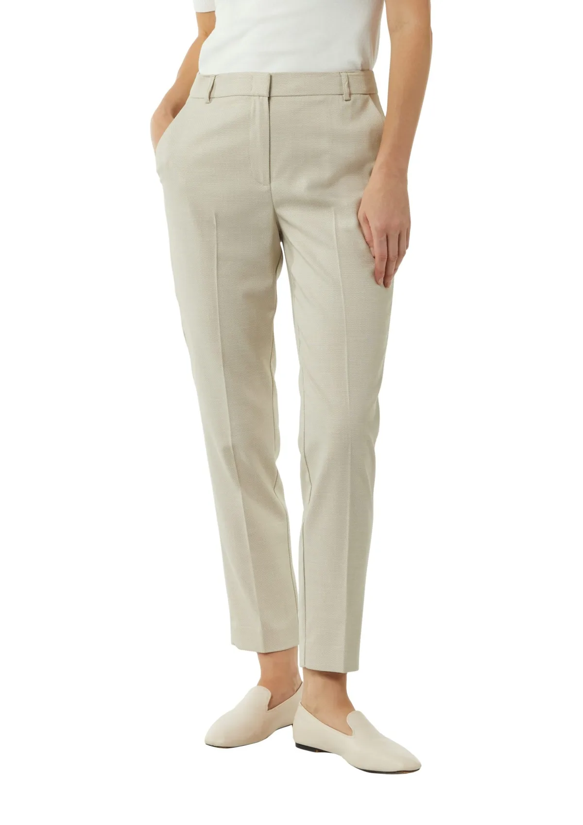 Design: Achterzak; Type sluiting: Knoopsluiting; Motief: Effen; Details: Plooien; Extra's: Label patch/label flag, Riemlussen; Lengte: 7/8 lengte; Pasvorm: Slimfit; Taillehoogte: Mid waist