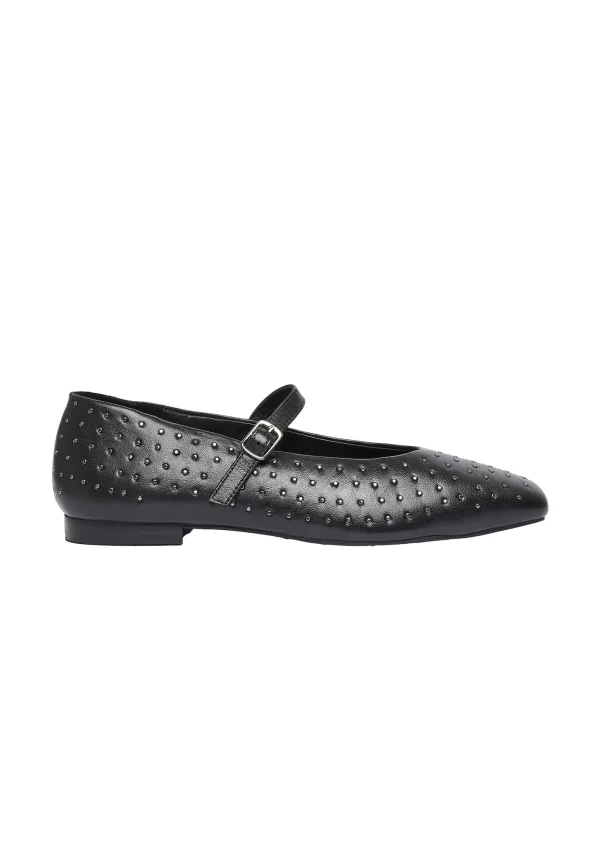 Design: Verstelbare riemen; Type sluiting: Riemsluiting; Materiaal: Leer; Motief: Effen; Materiaal: Glad leer; Schoenneus: Vierkante neus; Extra's: Studs, Op staal naden; Hakhoogte: Platte hak (0-3 cm)