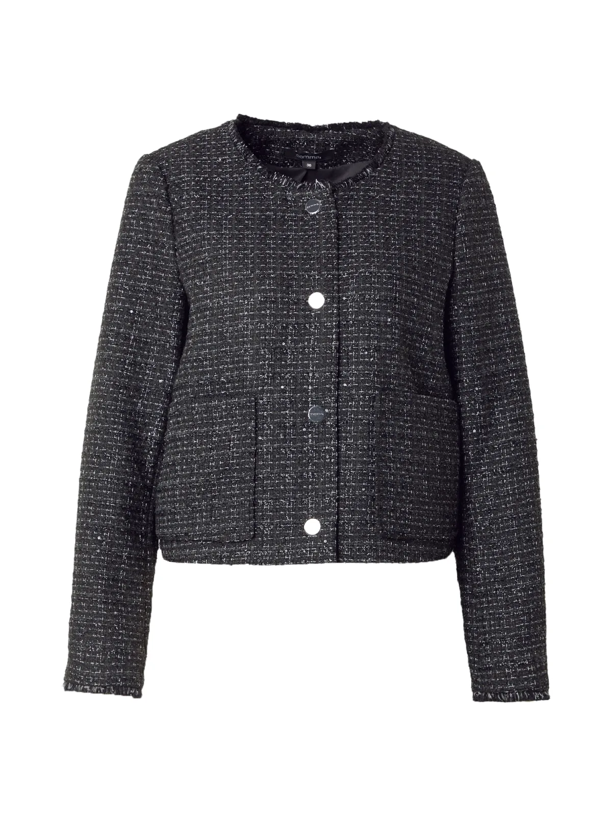 Design: Gefranjerde zoom, Opgezette zakken; Type sluiting: Drukknoop; Voering: Licht gevoerd; Materiaal: Bouclé; Motief: Mélange; Kraag: Zonder kraag; Extra's: Glitterend, Voelt zacht aan; Pasvorm: Normale pasvorm; Armlengte: Lange mouw; Lengte: Normale lengte