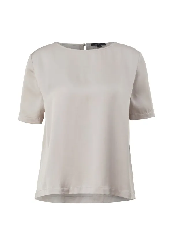 Blouse type: Blouseshirt; Design: Gevoerde zoom/rand; Type sluiting: Knoopsluiting; Materiaal: Satijn; Motief: Effen; Kraag: Zonder kraag; Details: Cut-outs; Extra's: Glanzend, Op staal naden; Pasvorm: Normale pasvorm; Armlengte: Kwartmouw; Lengte: Normale lengte