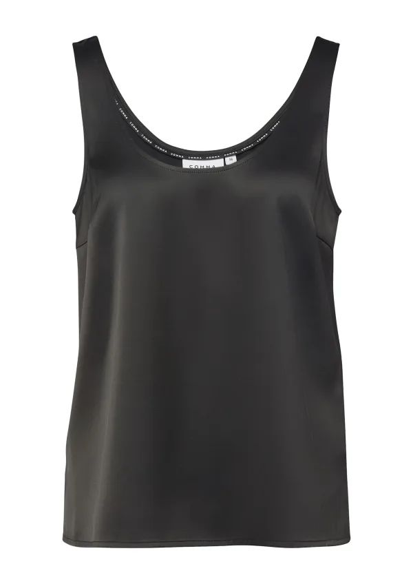 Blouse type: Blouseshirt; Design: Gevoerde zoom/rand, Figuurnaden, Nektape; Motief: Effen; Kraag: Zonder kraag; Extra's: Op staal naden, Gladde stof; Pasvorm: Normale pasvorm; Armlengte: Mouwloos; Lengte: Normale lengte