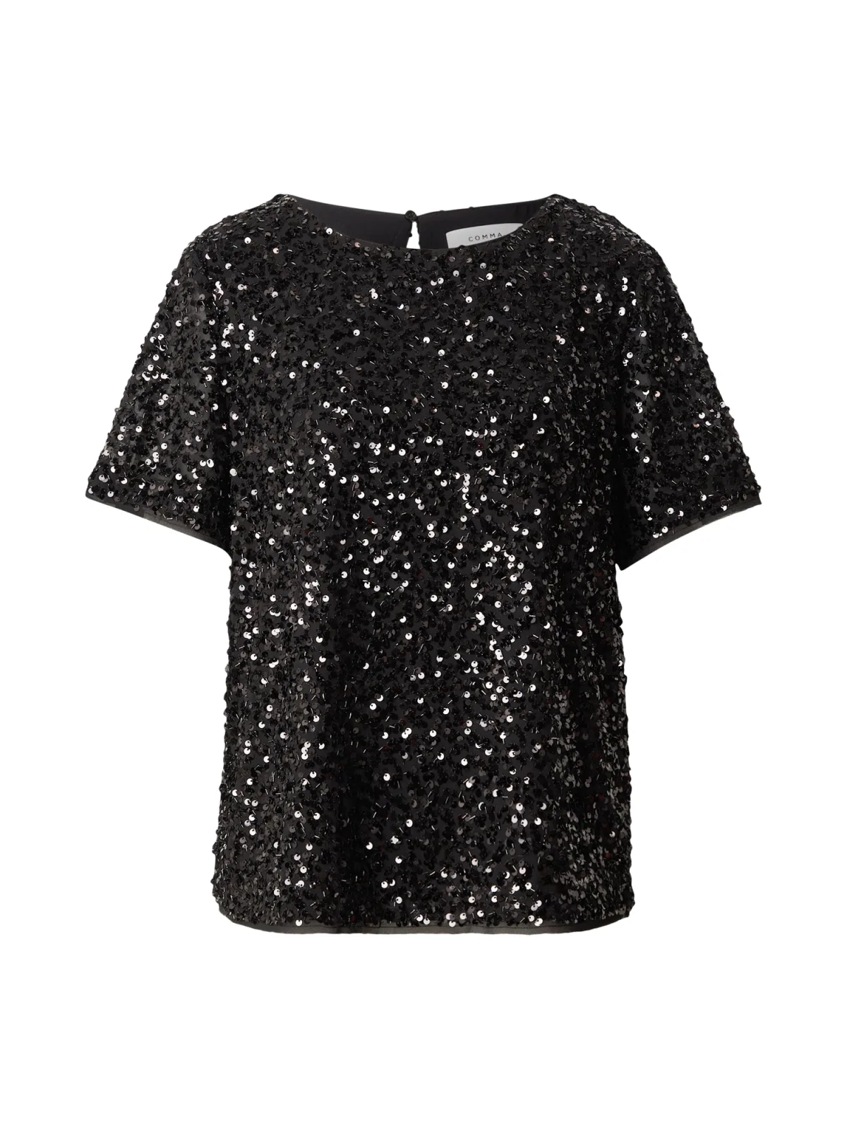 Blouseshirt voor dames van comma;Chiffon;Regular fit;Pailletten;Ronde hals;Knoopsluiting aan de achterkant;Ruglengte bij maat 36: 60 cm;Mouwlengte bij maat 36: 24 cm