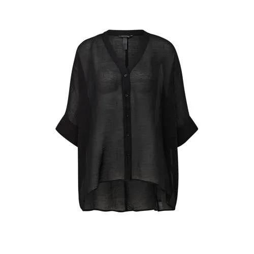 Blouse type: Klassieke blouse; Design: Gevoerde zoom/rand; Type sluiting: Knoopsluiting; Materiaal: Chiffon; Motief: Effen; Kraag: Zonder kraag; Extra's: Transparant; Pasvorm: Losse pasvorm; Armlengte: Halve mouw; Lengte: Normale lengte