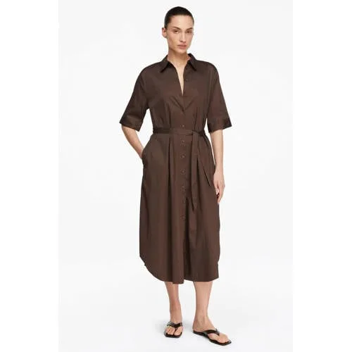 dames overhemdjurk van comma;Katoenmix met stretch;getailleerd model;Midijurk;overhemdkraag;knoopsluiting;strikceintuur;ruglengte bij maat 36: 118 cm;borstwijdte bij maat 36: 37 cm;mouwlengte bij maat 36: 32 cm