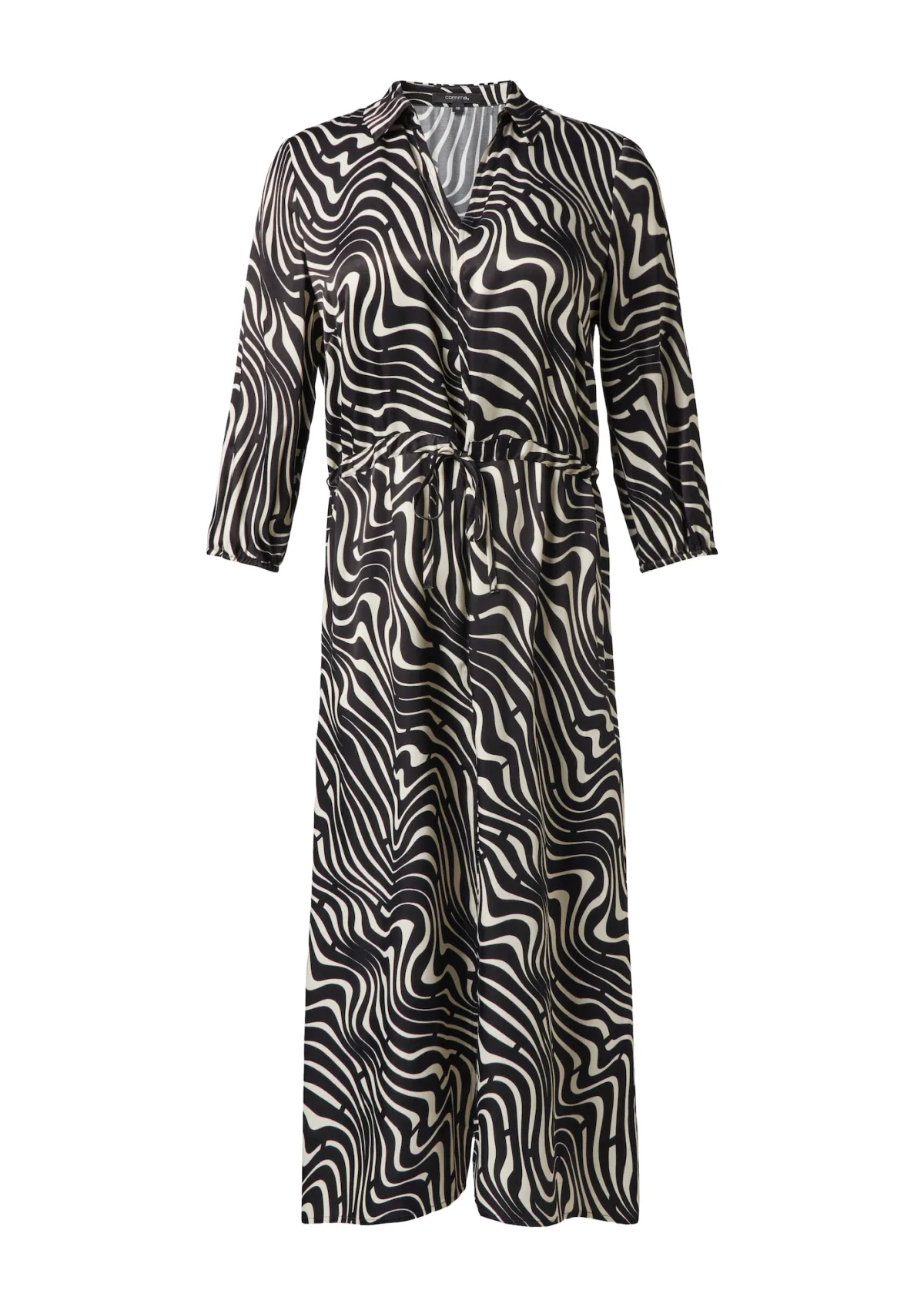 Design: Gevoerde zoom/rand, Taille met trekkoord; Materiaal: Viscose; Halstype: Polokraag; Extra's: All-over patroon, Voelt zacht aan; Lengte: Knielengte; Snit: Recht; Pasvorm: Normale pasvorm; Armlengte: Driekwart mouw