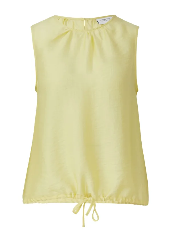 Blouse type: Blouseshirt; Design: Gevoerde zoom/rand, Taille met trekkoord, Keyholesluiting, Brede mouwopeningen; Type sluiting: Knoopsluiting; Materiaal: Lyocell; Motief: Effen; Kraag: Zonder kraag; Details: Gedrapeerd; Extra's: Op staal naden; Pasvorm: Normale pasvorm; Armlengte: Mouwloos; Lengte: Normale lengte