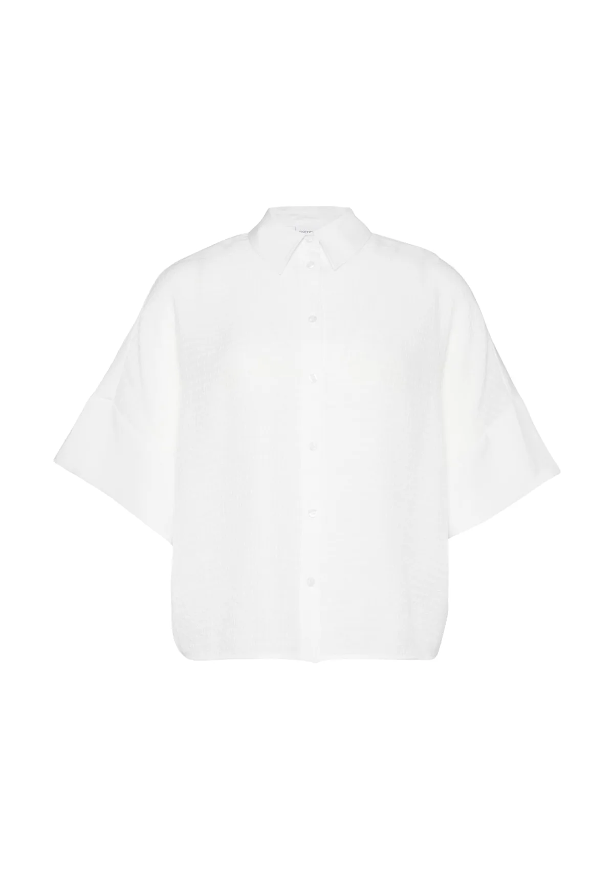 Blouse type: Klassieke blouse; Design: Gevoerde zoom/rand; Type sluiting: Knoopsluiting; Materiaal: Viscose; Motief: Effen; Kraag: Kentkraag; Details: Gedrapeerd; Extra's: Met textuur; Pasvorm: Losse pasvorm; Armlengte: Halve mouw; Lengte: Normale lengte