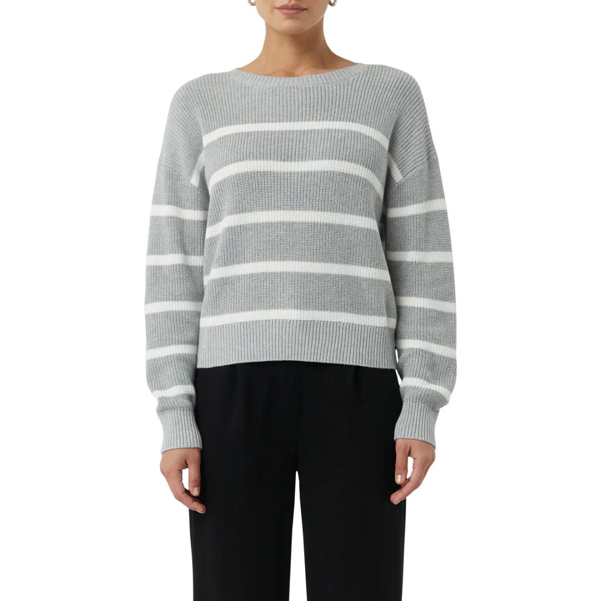 Design: Geribd ceintuurtje; Materiaal: Knitwear; Halstype: Ronde hals; Motief: Gestreept; Extra's: Fully fashioned; Pasvorm: Losse pasvorm; Armlengte: Lange mouw; Lengte: Normale lengte