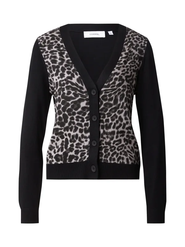 Design: Geribbelde kraag, Knop placket, Geribd ceintuurtje; Type sluiting: Knoopsluiting; Materiaal: Knitwear; Halstype: V-hals; Motief: Dierenprint; Extra's: All-over patroon, Fully fashioned, Voelt zacht aan; Pasvorm: Normale pasvorm; Armlengte: Lange mouw; Lengte: Normale lengte