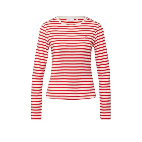Design: Gevoerde zoom/rand, Rechte zoom, Nektape; Materiaal: Jersey; Halstype: Ronde hals; Motief: Gestreept; Details: Borduursels; Extra's: All-over patroon, Voelt zacht aan; Pasvorm: Slanke pasvorm; Armlengte: Lange mouw; Lengte: Normale lengte