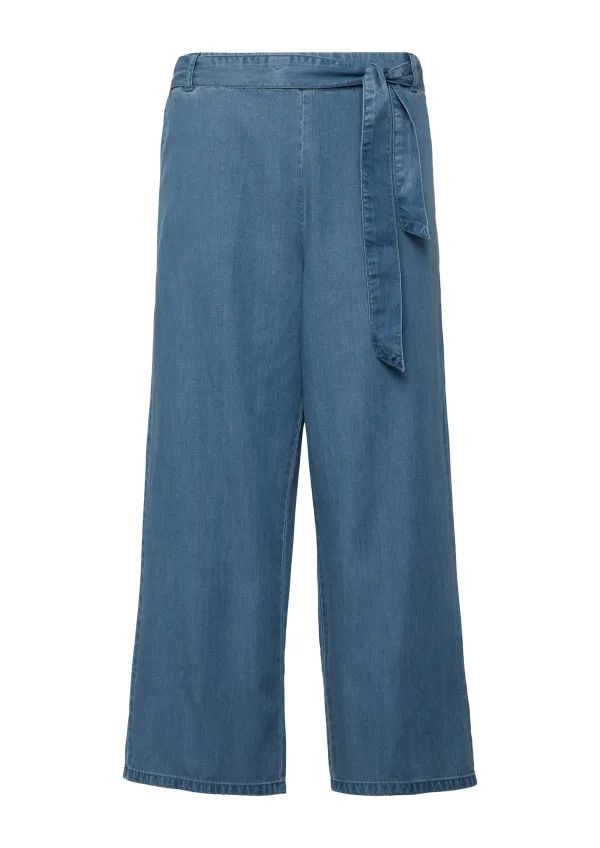Design: Met band/snoer; Materiaal: Denim; Motief: Effen; Extra's: Lichte stof; Wassing: Heavy washed; Lengte: 7/8 lengte; Pasvorm: Wide leg; Taillehoogte: Mid waist