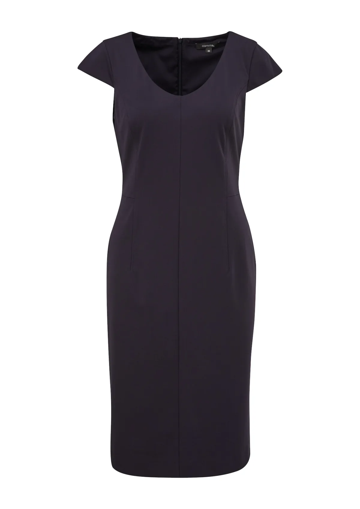 Design: Gevoerde zoom/rand, Rechte zoom, Rug rits; Type sluiting: Ritssluiting; Materiaal: Jersey; Halstype: V-hals; Motief: Effen; Extra’s: Op staal naden, Voelt zacht aan; Lengte: Knielengte; Pasvorm: Aansluitende pasvorm; Armlengte: Kwartmouw