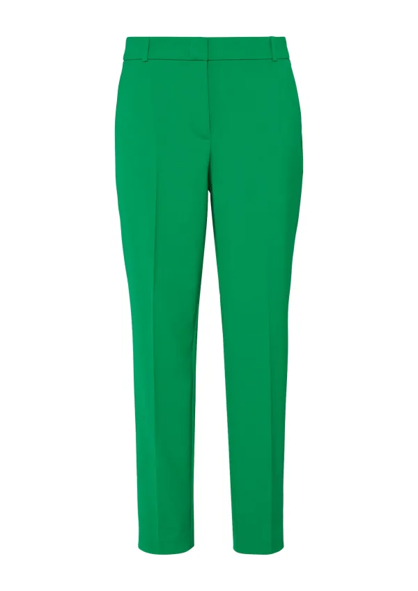 Design: Gevoerde zoom/rand, Zakken aan de zijkant; Type sluiting: Ritssluiting; Materiaal: Viscose; Motief: Effen; Details: Plooien; Extra's: Gladde stof, Riemlussen; Lengte: 7/8 lengte; Pasvorm: Tapered; Taillehoogte: Mid waist