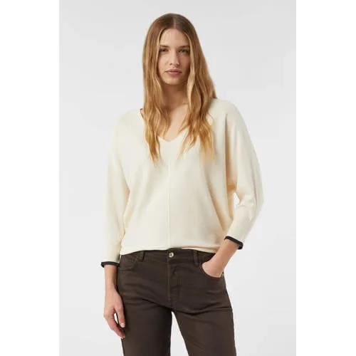Gebreide pullover van comma voor dames;Viscosemix;Regular fit;V-hals;Mouwen met contraststrepen;Ruglengte bij maat S: 52 cm;Mouwlengte bij maat S: 56 cm
