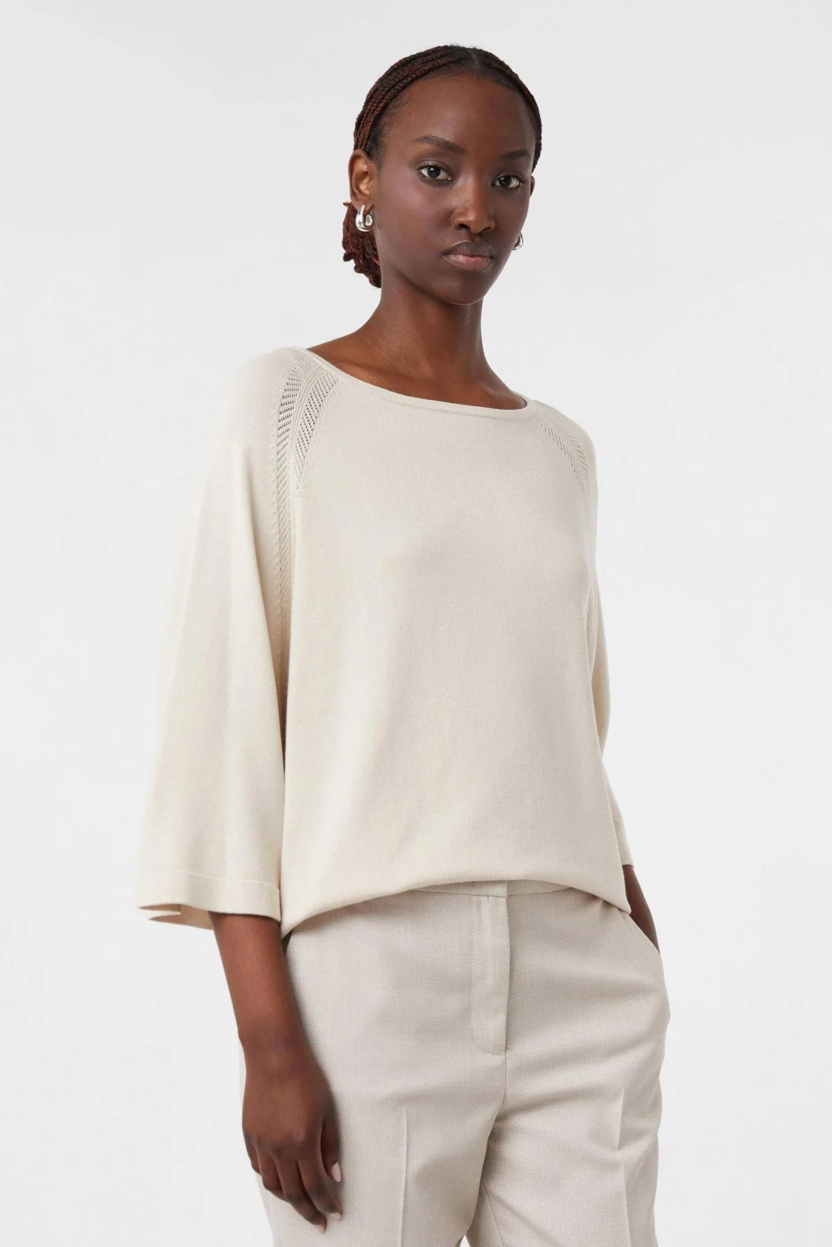 Design: Raglanmouwen; Materiaal: Knitwear; Halstype: Boothals; Motief: Effen; Details: Mesh; Extra's: Voelt zacht aan; Pasvorm: Losse pasvorm; Armlengte: Driekwart mouw; Lengte: Normale lengte