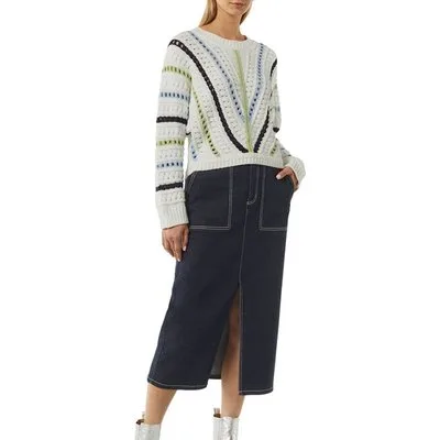 comma casual identity Trui lichtblauw lichtgroen zwart offwhite