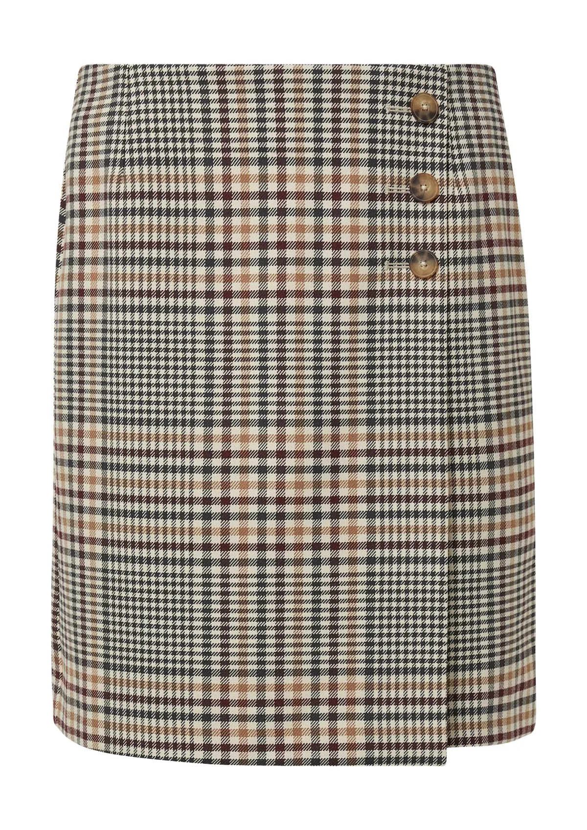 Design: Gevoerde zoom/rand, Knop placket; Type sluiting: Knoopsluiting; Motief: Geruit; Rokvorm: Wickelrock; Details: Wikkel design; Extra's: All-over patroon, Voelt zacht aan; Lengte: Knielengte; Pasvorm: Normale pasvorm