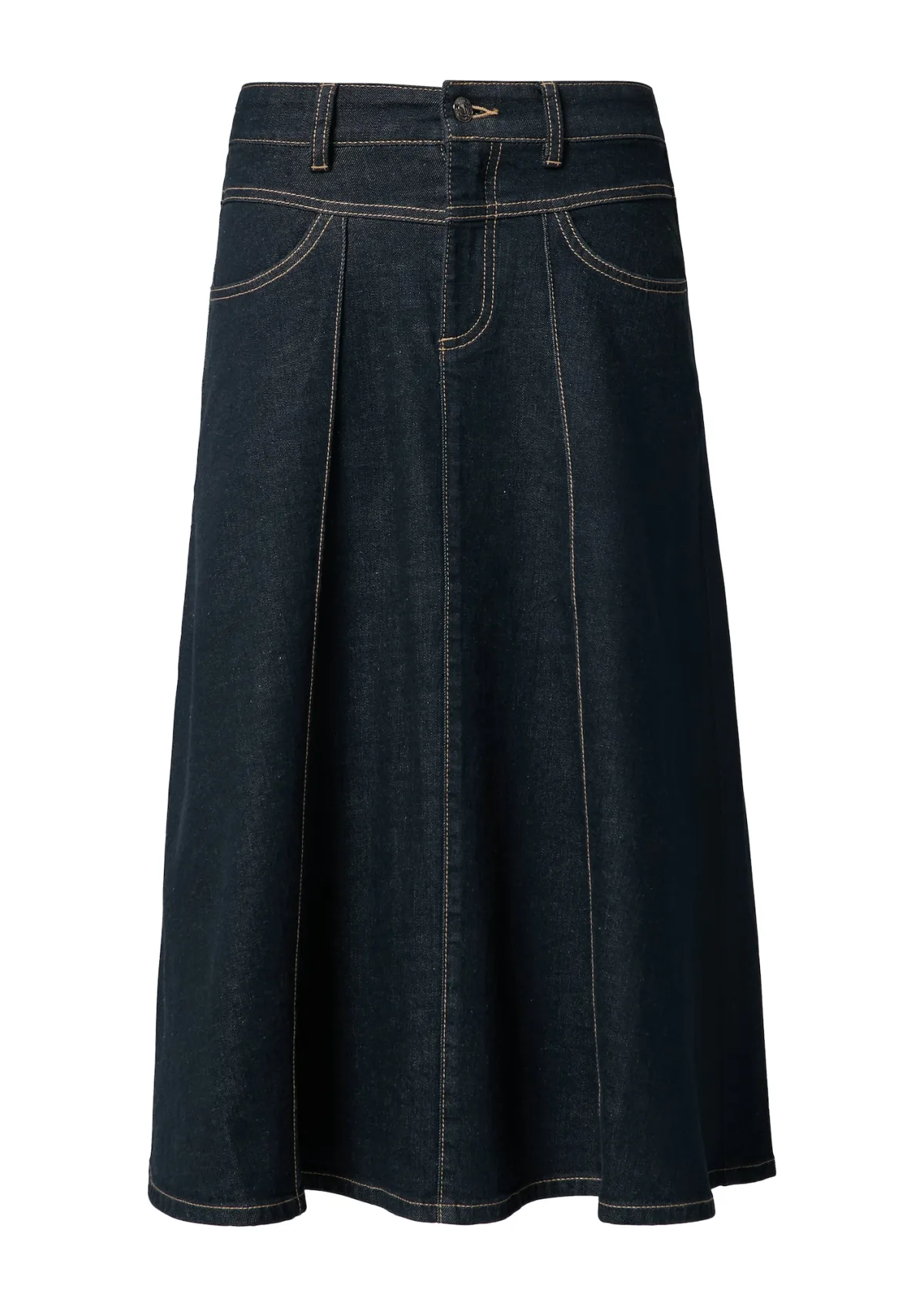 Design: Gevoerde zoom/rand; Materiaal: Denim; Motief: Effen; Rokvorm: A-lijn rok; Extra's: Vaste grip; Lengte: 3/4 lengte; Pasvorm: Normale pasvorm