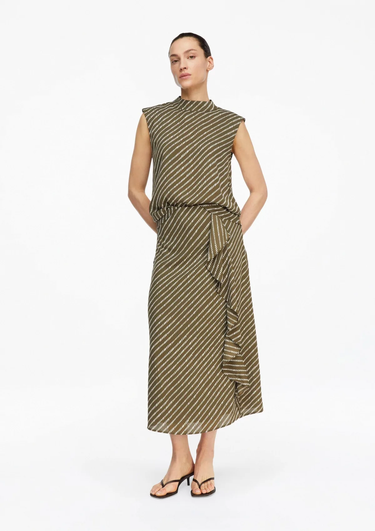 Design: Gevoerde zoom/rand, A-lijn, Verborgen rits; Type sluiting: Ritssluiting; Details: Volant; Extra's: All-over patroon, Gladde stof; Lengte: 7/8 lengte; Pasvorm: Normale pasvorm; Taillehoogte: High waist