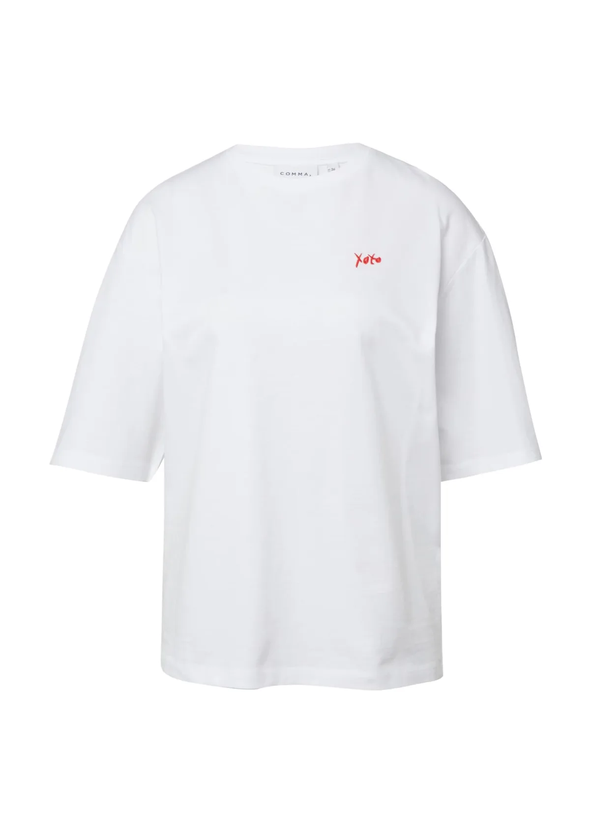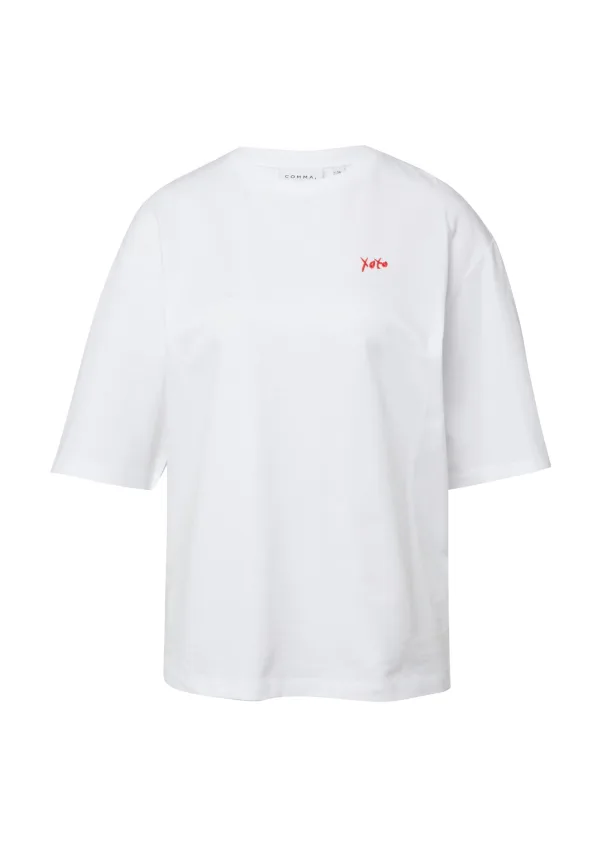 Dames T-shirt van Comma;Relaxed Fit;Mix van katoen en elastaan;Motief-stitching;Ronde hals;Halflange mouwen design;Ruglengte bij maat 36: 62 cm