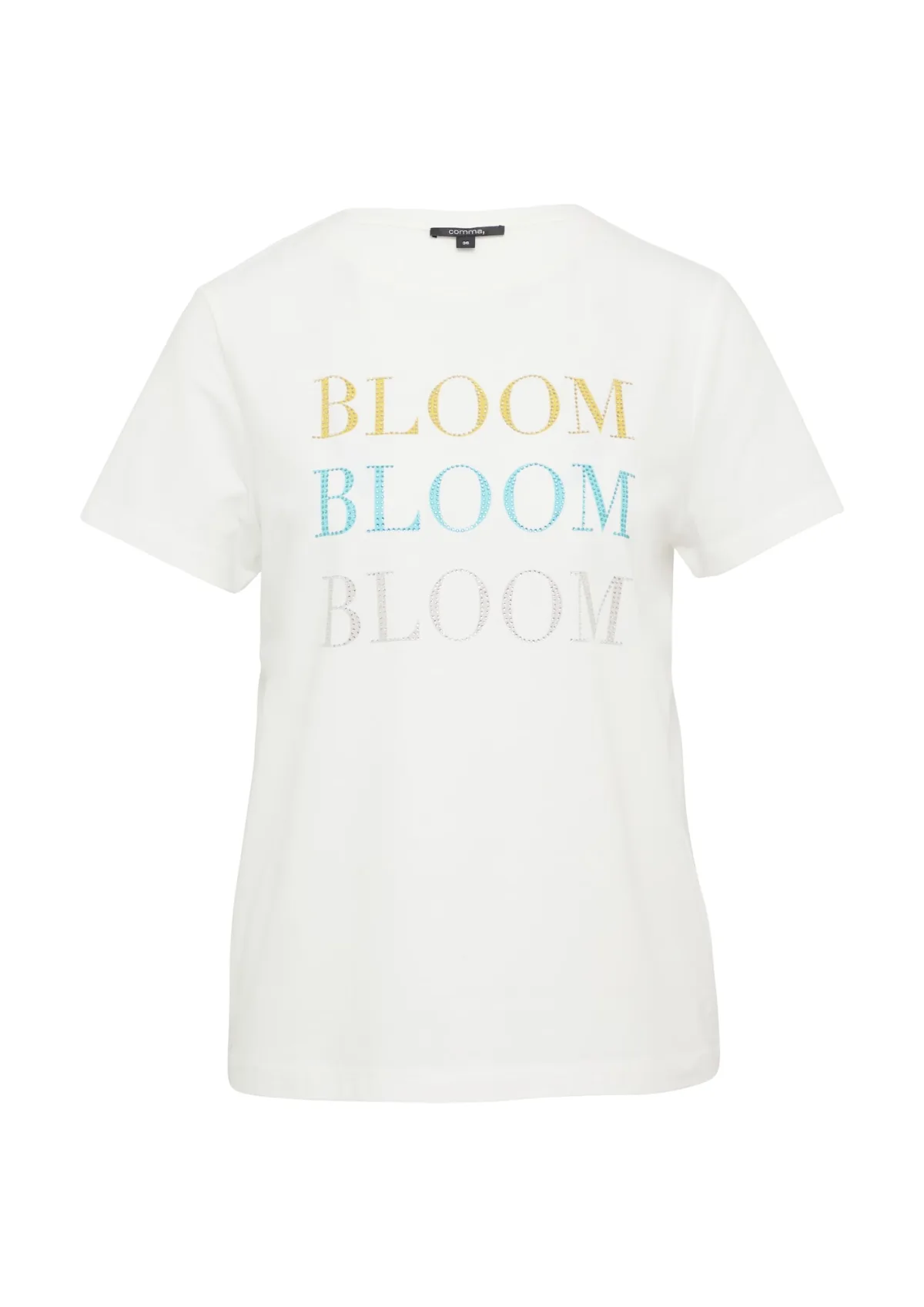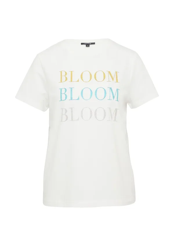 Design: Gevoerde zoom/rand, Rechte zoom; Materiaal: Jersey; Halstype: Ronde hals; Motief: Tekst print; Details: Sierstenen; Extra's: Met halfedelstenen, Voelt zacht aan; Pasvorm: Normale pasvorm; Armlengte: Kwartmouw; Lengte: Normale lengte