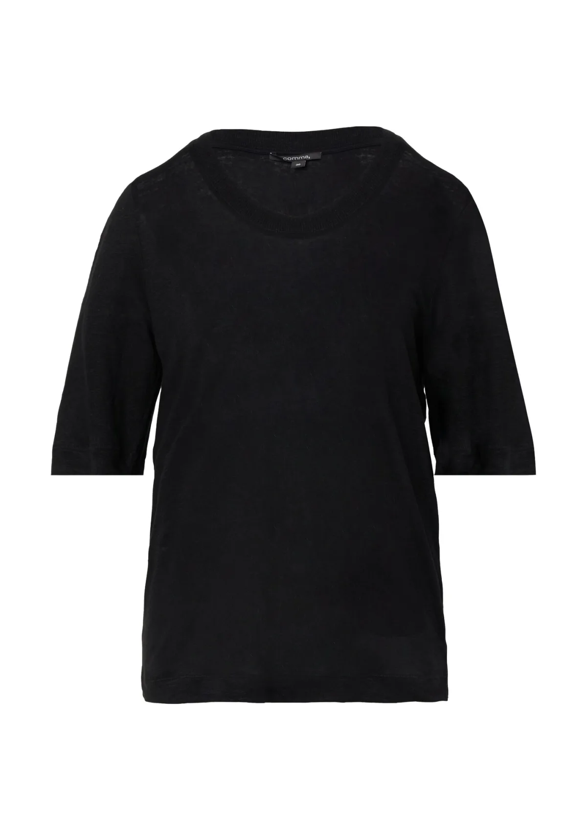 Design: Geribd ceintuurtje; Materiaal: Jersey; Halstype: V-hals; Motief: Effen; Extra's: Op staal naden; Pasvorm: Normale pasvorm; Armlengte: Halve mouw; Lengte: Normale lengte