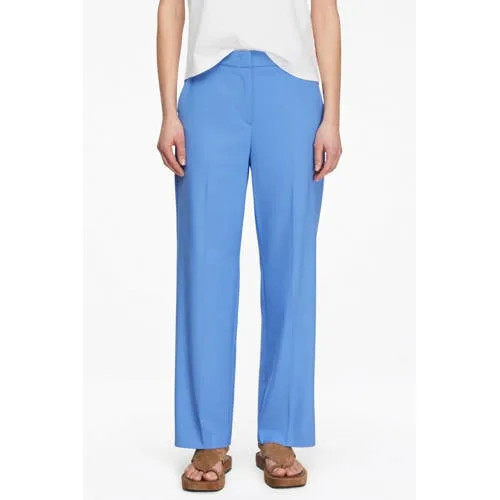 Met deze blauwe straight fit pantalon voor dames van comma voeg je eenvoudig een elegante basis toe aan je garderobe. De broek heeft een mid rise taille en rechte pijpen, waardoor het model mooi langs het been valt zonder strak te zitten. Het soepele geweven materiaal voelt zacht aan en beweegt prettig met je mee, ideaal voor dagen waarop je veel in beweging bent.Verzorgde details voor elke werkdag Recht model met straight leg voor een tijdloze, verzorgde uitstraling Mid rise taille met gevormde band voor een nette pasvorm rond je heupen Rits- en haaksluiting aan de voorkant voor een strakke afwerking Steekzakken aan de voorkant en sierzakken achter voor een verzorgd geheel Soepel geweven stof die prettig aanvoelt en mooi valt Effen blauwe kleur, eenvoudig te combineren met blouses, tops en blazers Geschikt voor zowel feestelijke gelegenheden als business looksZakelijk en feestelijk te dragenVoor een zakelijke dag combineer je de broek met een blouse en blazer, voor een diner of feestelijke gelegenheid staat een satijnachtige top of vrouwelijke blouse er mooi bij. Pumps, haklaarzen of nette loafers passen goed bij de rechte pijpen en maken je outfit compleet.comma: moderne mode met een verzorgde uitstralingcomma ontwerpt kleding met een duidelijke focus op vrouwelijke, elegante pasvormen die geschikt zijn voor kantoor en daarbuiten. Met aandacht voor details en draaggemak biedt het merk items die je gemakkelijk combineert tot een verzorgde, hedendaagse look.Een comfortabele basis voor outfits waarmee je er de hele dag netjes en zelfverzekerd uitziet.