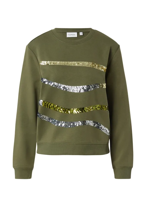 COMMA Sweatshirt goud / olijfgroen / kiwi / zilver