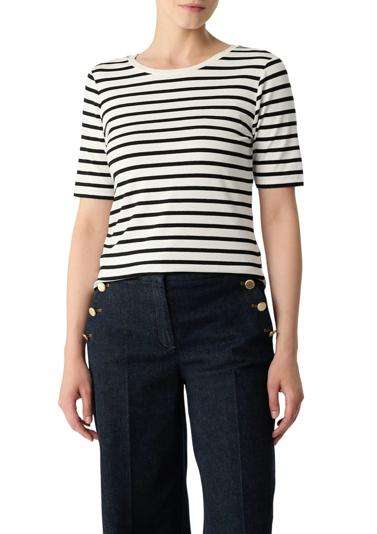 Design: Gevoerde zoom/rand, Rechte zoom; Materiaal: Jersey; Halstype: Ronde hals; Motief: Gestreept; Extra's: Glitterend, All-over patroon; Pasvorm: Slanke pasvorm; Armlengte: Kwartmouw; Lengte: Normale lengte