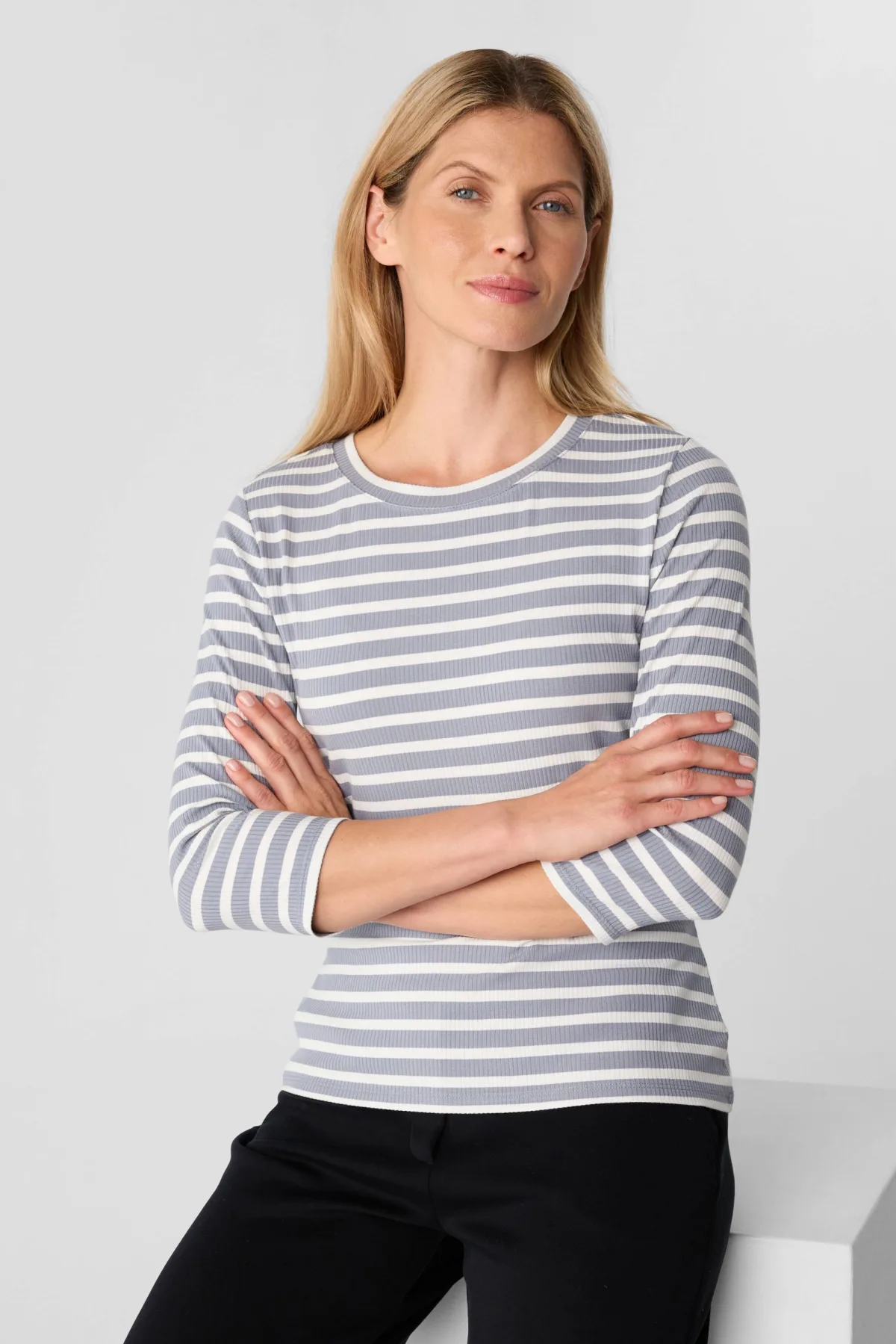 Design: Gevoerde zoom/rand, Geribbelde kraag, Ronde zoom; Materiaal: Jersey; Halstype: Ronde hals; Motief: Gestreept; Extra's: All-over patroon, Label patch/label flag, Voelt zacht aan; Pasvorm: Slanke pasvorm; Armlengte: Driekwart mouw; Lengte: Normale lengte