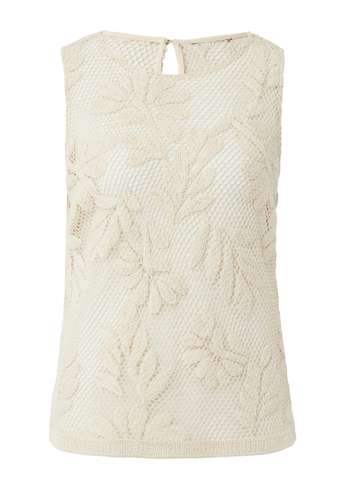 Design: Keyholesluiting; Materiaal: Gehaakt; Halstype: Ronde hals; Motief: Effen; Soort bandjes: Brede bandjes; Details: Cut-outs; Extra's: Sterk transparant; Pasvorm: Normale pasvorm; Armlengte: Mouwloos; Lengte: Normale lengte