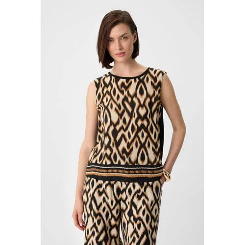 Blouse type: Blouseshirt; Design: Gevoerde zoom/rand, Keyholesluiting; Type sluiting: Knoopsluiting; Materiaal: Jersey; Kraag: Zonder kraag; Details: Cut-outs; Extra's: All-over patroon, Label patch/label flag; Pasvorm: Normale pasvorm; Armlengte: Mouwloos; Lengte: Korte pasvorm