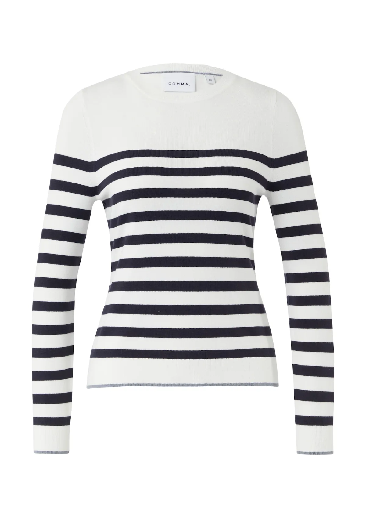 Design: Geribd ceintuurtje; Materiaal: Knitwear; Halstype: Boothals; Motief: Gestreept; Extra's: All-over patroon; Pasvorm: Slanke pasvorm; Armlengte: Lange mouw; Lengte: Normale lengte