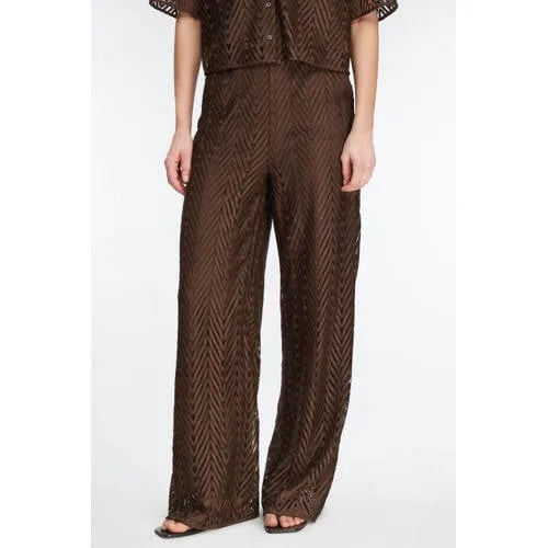 comma wide leg high waist casual broek donkerbruin