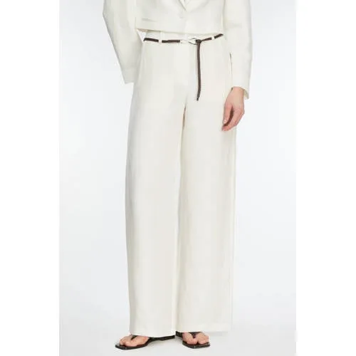 Deze witte wide leg broek van linnen en lyocell voor dames is een lichte, elegante basis voor allerlei momenten in je week. De high rise taille, relaxed fit en wijde pijpen geven een mooie, vloeiende lijn, terwijl de effen witte kleur zorgt voor een rustige en stijlvolle uitstraling. De mix van lyocell en linnen voelt soepel en luchtig aan, fijn op warmere dagen of op kantoor.Details die het verschil maken High rise taille die mooi aansluit en prettig zit rond je middel Relaxed fit met wide leg pijpen voor een los, luchtig silhouet Gemaakt van 60% lyocell en 40% linnen, voor een soepele, lichte stof Rits- en haaksluiting aan de voorkant voor een nette afwerking Steekzakken voor en zakken achter, handig voor kleine essentials Effen witte kleur, makkelijk te combineren in een minimalistische of klassieke look Inclusief ceintuur voor extra accent op de taille Lange broeklengte, ideaal voor hakken, sandalen of sneakersVan werkdag tot diner en vakantieDeze broek past net zo makkelijk bij een zakelijke blouse en loafers als bij een top en sandalen op vakantie. Voor een feestje combineer je hem met een fijn breisel of satijnen top en hakken. De losse pasvorm en lichte stof maken het een comfortabele keuze voor lange dagen.comma: moderne stijl met een vrouwelijke touchcomma staat bekend om eigentijdse damesmode met een vrouwelijke, stijlvolle uitstraling. De collecties combineren modieuze details met draagbare ontwerpen voor alledaagse en meer geklede momenten. Met deze broek haal je een kledingstuk in huis dat past binnen een doordachte garderobe vol sterke basics en moderne accenten.Een veelzijdige broek die je garderobe het hele seizoen rustig en stijlvol aanvult.
