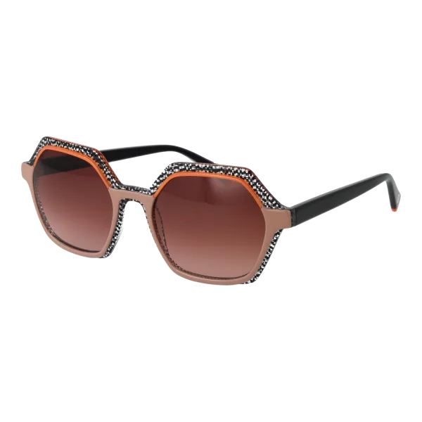 Geslacht: Vrouw Hoofdkleur: Meerkleurig Kleur van het frame: Meerkleurig Frame materiaal: Acetaat Kleur van lenzen: Roze Lenzenmateriaal: Kunststof Filtercategorie: 3 Lenzen effect: Geen extra's Bescherming: 100% UVA & UVB Breedte van de lenzen: 53 Hoogte van de lenzen: 44 Brugbreedte: 19 Frame breedte: 140 Lengte van de slapen: 135 Velgenstijl: Full-Rim Veer scharnier: Nee Extra: Geen extra's Country: China