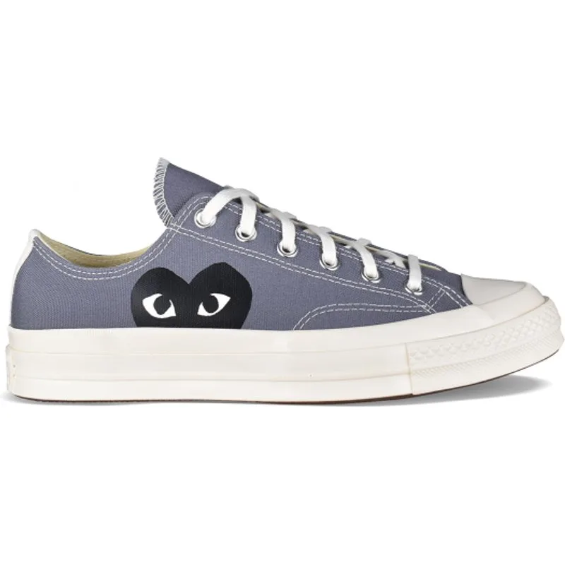 Comme Des Garçons Play x Converse lage sneakers.Grijs canvas.Ronde witte rubberen neus.Handtekening zwart hartlogo aan de buitenkant.Vetersluiting.Contrasterende stiksels. Witte rubberen zool.