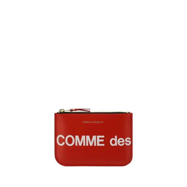 Kalfsleer Muntportemonnee van Comme des Garçons, contrasterend gedrukt logo op de voorkant dat op de achterkant doorloopt, gegraveerd gouden logo op de voorkant, ritsluiting met één intern vak. Seizoen: SS26 Afmetingen: 15×10 Samenstelling: 100% Kalfsleer Bos Taurus
