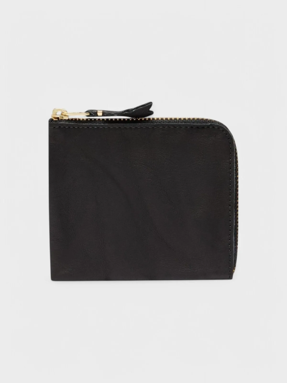 Comme Des Garçons portemonnee. Gouden ritssluiting rondom met een interne zak. Gemaakt van kalfsleer. Interne centrale pocket. Interne reliëf logo. Halve ritssluiting. 110 mm x 95 mm. 100% Kalfsleer. Gemaakt in Spanje. SA3100