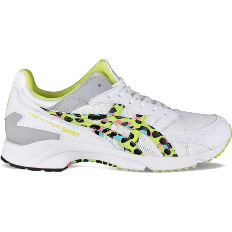 Tarther SD sneakers in wit Comme Des Garçons Play x Asics canvas.Grijze suède inzetstukken.Groene, blauwe en roze luipaardmotieven.Witte vetersluiting aan de voorkant.Logo op de tong aan de voorkant.Superlichte rubberen zool.Ronde amandelvormige neus.