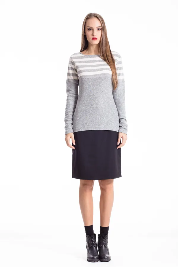 Strepen sieren de borst en schouders en geven een trendy uitstraling aan deze weelderige top van Conquista. Lurex zorgt voor een subtiele glans voor extra aantrekkingskracht. Combineer met een tonale rok of broek om de look af te maken. Het getoonde model is 178 cm lang en draagt maat 36/S.