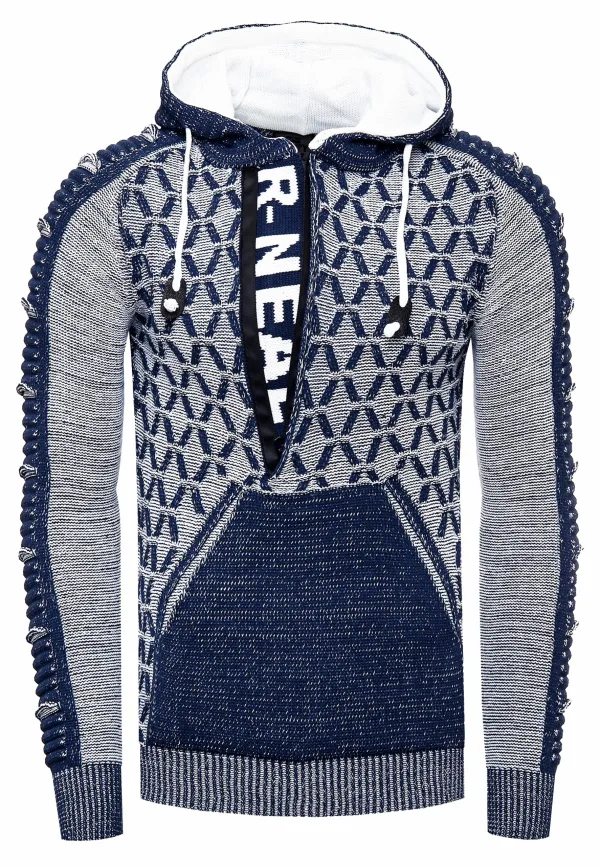 Contrasterende grof gebreide hoodie met 1/2 rits