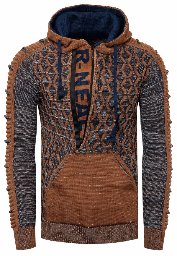 Contrasterende grof gebreide hoodie met 1/2 rits Prijzen