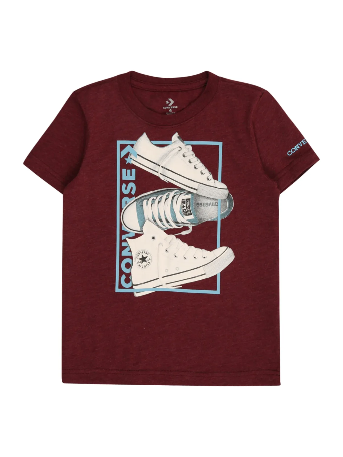 - Bij aboutyou.nl kun je CONVERSE Shirt '3 SHOE' azuur / donkerrood / zwart / wit kopen voor slechts €13,90