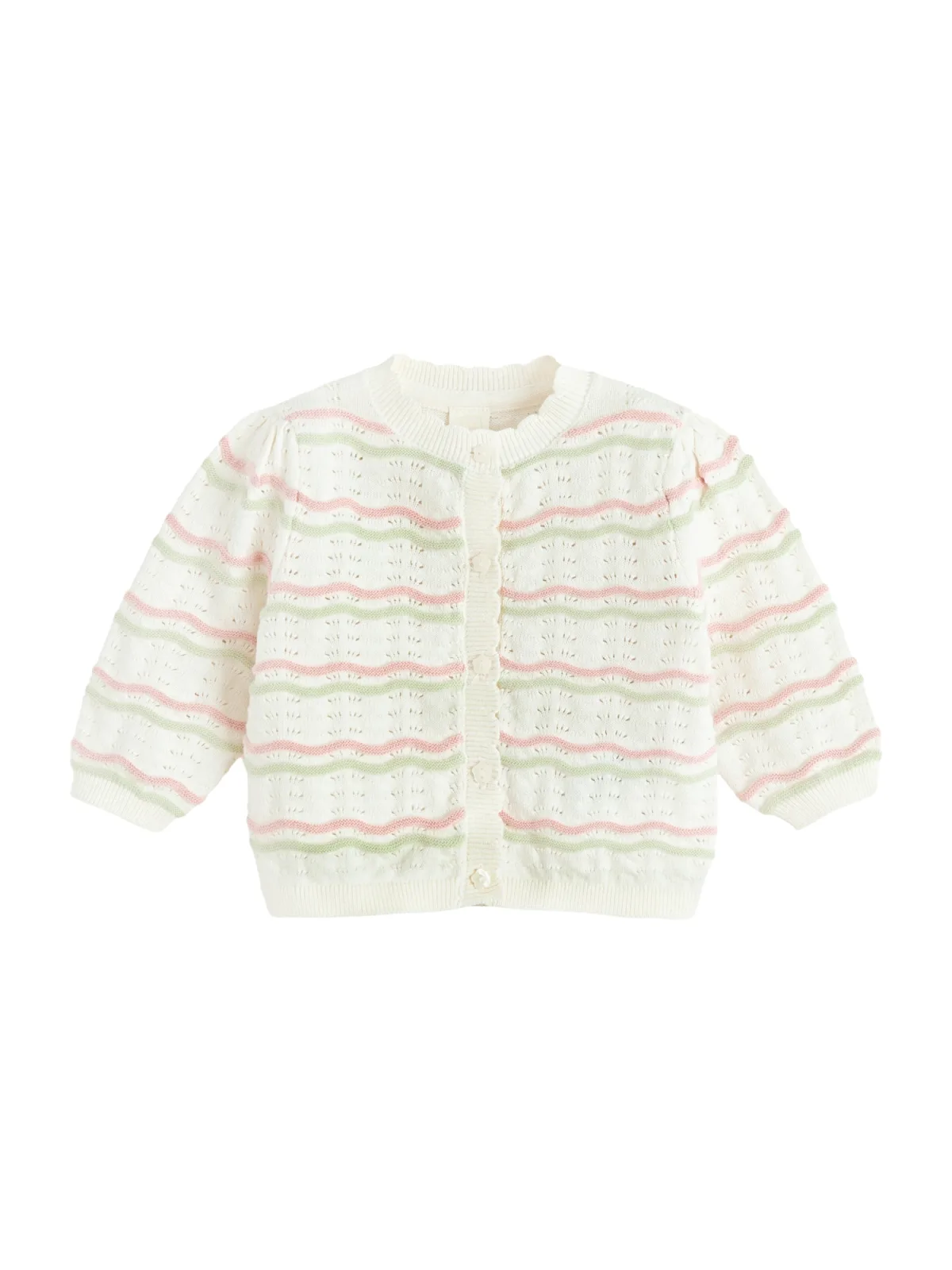 Design: Geribbeld gebreid; Type sluiting: Knoopsluiting; Materiaal: Knitwear; Halstype: Ronde hals; Motief: Gestreept; Details: Mesh; Extra's: Patroon gebreid, All-over patroon; Pasvorm: Normale pasvorm; Armlengte: Lange mouw; Lengte: Normale lengte